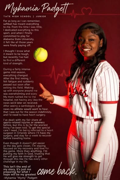 Alabama State/Tate Alum softball player Mykamia Padgett has received news that she has to have heart surgery. All proceeds for the upcoming softball tournament will go towards her open heart surgery & travel to Nemour’s Children in Orlando.