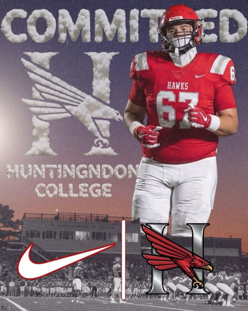 Navarre Raider Offensive Lineman Kyle Hughes (Class of 2026) has committed to further his education and play football for the Hawks of Huntingdon College. Huntingdon is a D3 school located in Montgomery, AL.